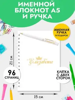 Блокнот А5 именной Елизавета с ручкой на Новый год