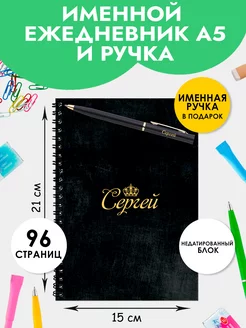 Ежедневник А5 именной Сергей с ручкой на Новый год