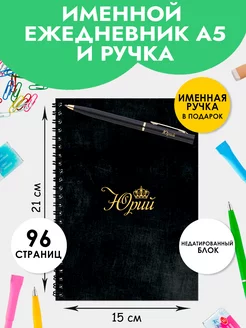 Ежедневник А5 именной Юрий с ручкой на Новый год