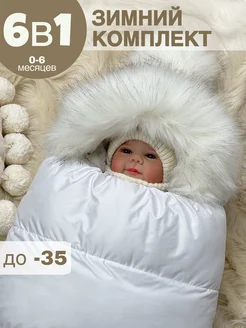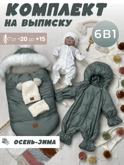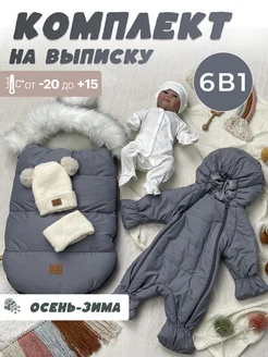 Конверт на выписку зима осень комплект прогулочный 7в1