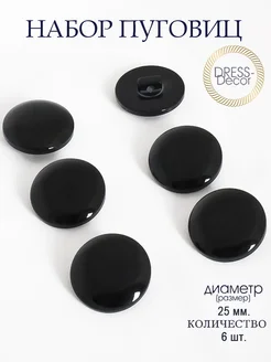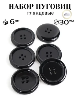 Пуговицы черные большие на ножке 6 шт 25 мм