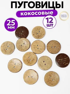 Пуговицы 25 мм кокосовые деревянные большие 12 шт