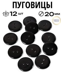 Пуговицы 20 мм черные глянцевые 2 прокола 12 шт