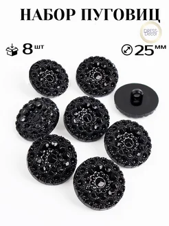 Пуговицы черные большие на ножке 8 шт 25 мм