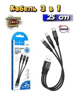 Кабель HOCO X47 3-в-1 0,25м металлик зарядка универсальная