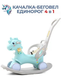 Лошадка-качалка-беговел Единорог (с ручкой для родителей)