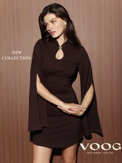 Новогоднее платье кейп мини вечернее с длинными рукавами