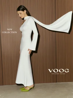 Новогоднее вечернее платье макси с шарфом с открытым плечом