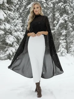 Новогодняя блузка кейп полупрозрачная из сетки со шлейфом