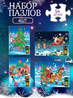 Набор новогодних пазлов для детей подарок 54 детали 4 шт