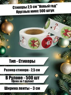 Стикеры клеевые 3 см "Новый год" круглые микс 500 шт