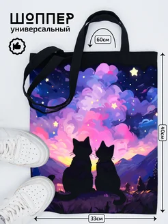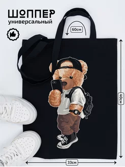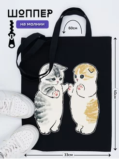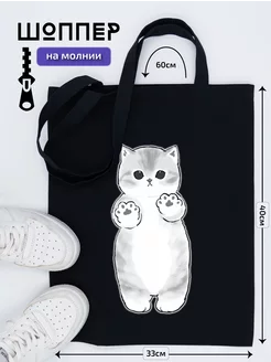 Сумка шоппер на молнии тканевая с карманом и принтом