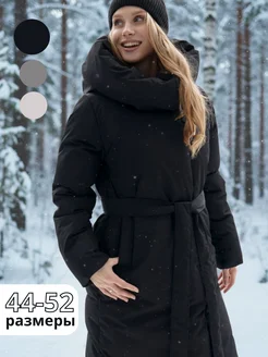Длинный пуховик с капюшоном зимний