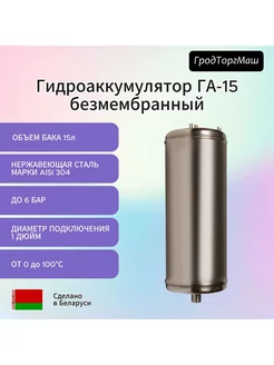 Гидроаккумулятор безмембранный ГА-15 из нерж. стали, 15 л