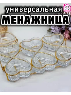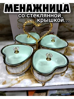 Менажница керамическая цветочек-сердечко стекло 4в1