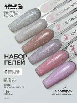 Набор гелей для наращивания ногтей Блестящая корова 6 штук