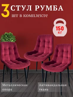 Стулья для кухни 3 шт со спинкой мягкие велюровые