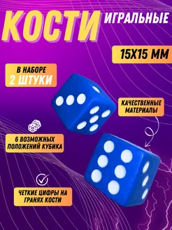 Кости игральные кубики синие 15 мм 2 шт для нард и игр