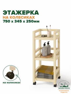 Этажерка на колесиках деревянная 75х35х25 см 3 полки