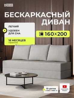Бескаркасный диван 160х200 кровать Прага Велюр светло-серый