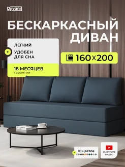 Бескаркасный диван-кровать 160х200 Прага Велюр сине-серый