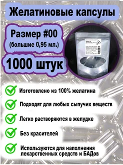 Пустые прозрачные капсулы, 0,95 мл 100 250 500 1000 штук