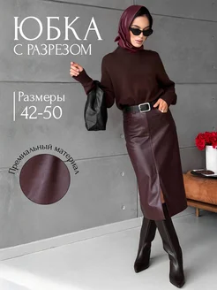 Юбка кожаная миди с разрезом