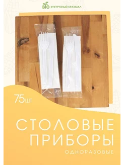 Набор одноразовых эко приборов (вилка,нож,салфетка) 75 шт