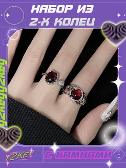 Набор колец бижутерия женская с камнем на фалангу аниме Y2k