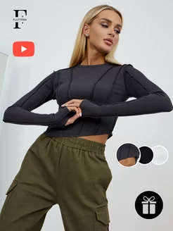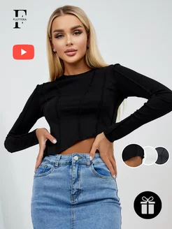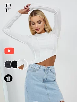 Лонгслив укороченный топ асимметричный с длинным рукавом