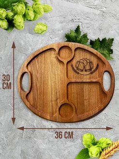 Поднос деревянный овальный с ручками и гравировкой