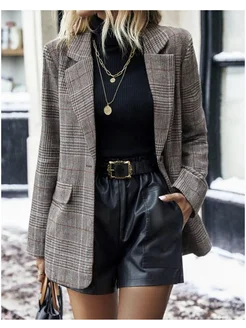 Пиджак жакет серый в клетку