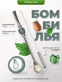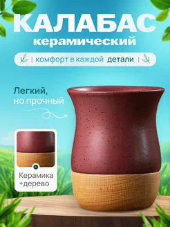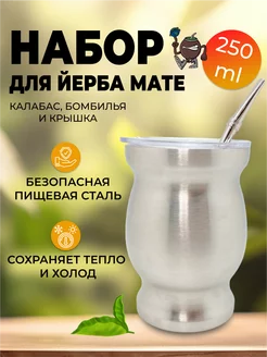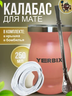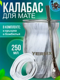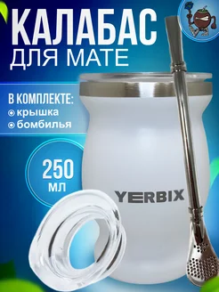 Калабас c крышкой и бомбильей для мате, 250 мл