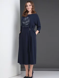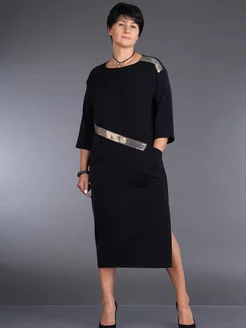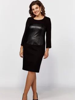Платье осеннее с длинным рукавом и вставкой из экокожи