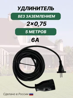 Удлинитель бытовой без заземления 5 метров черный