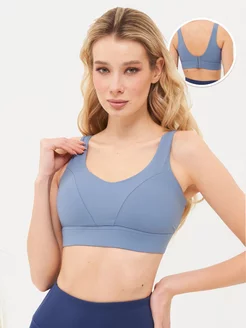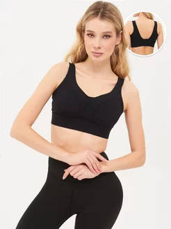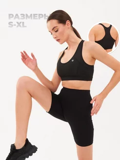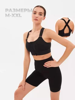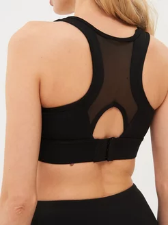 Топ спортивный черный бра на бретелях для фитнеса на молнии
