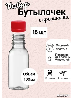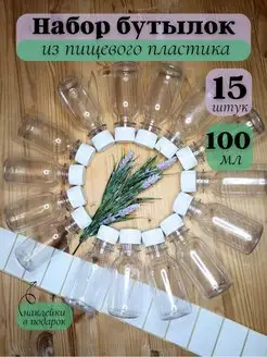 Бутылка пластиковая для воды 100 мл дорожная 15 штук
