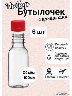 Бутылка пластиковая для воды 100 мл дорожная 6шт