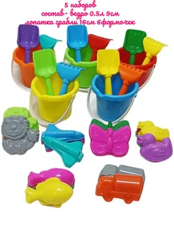 Набор для песочницы 9эл-5комплектов ведро 0.5л 9см