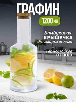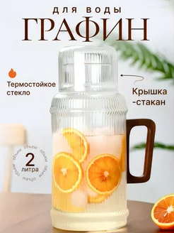 Графин для воды с крышкой стаканом стеклянный 2000 мл