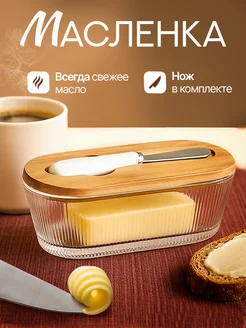 Масленка для сливочного масла стеклянная с крышкой и ножом