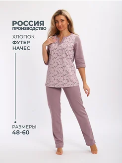 Пижама со штанами теплая с начесом больших размеров хлопок