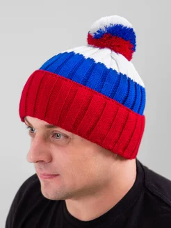 Шапка вязаная с помпоном триколор