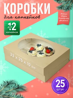 Коробки с окошком крафтовые для капкейков и маффинов 25шт