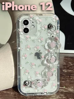 Милый силиконовый чехол на iPhone 12 с цепочкой