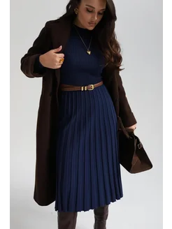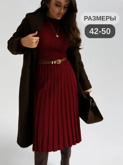 Платье трикотажное плиссе осень