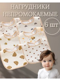 Слюнявчики для кормления непромокаемые набор 6 штук