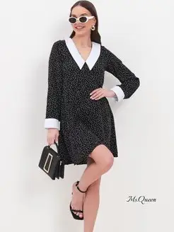 Летнее платье миди легкое вечернее длинный рукав в горошек