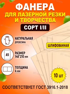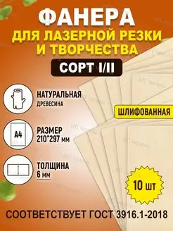 Фанера 6 мм 210*297 сорт 1 2 шлиофванная А4