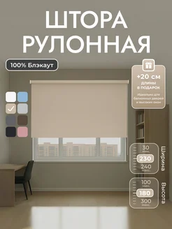 Рулонные шторы 230*180 см, БЛЭКАУТ бежевый